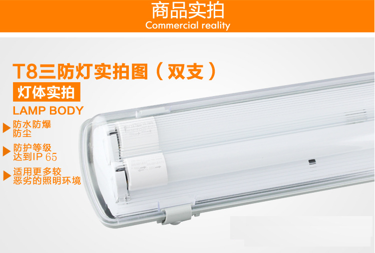2:T8普通日光燈三防燈具,T8三防燈是一款應(yīng)用比較廣的燈具,是針對(duì)普通日光燈來設(shè)計(jì)的,有通用
