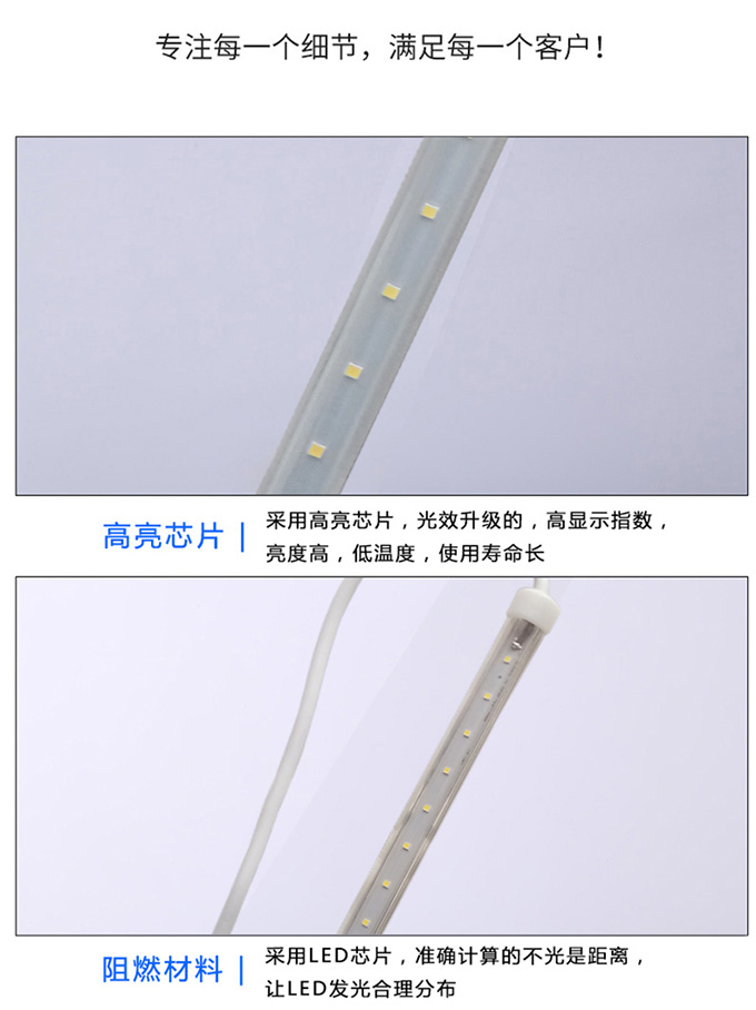 1、聚碳酸酯燈管外殼,T5管徑,燈管長(zhǎng)1.2米,兩頭防水設(shè)計(jì),防水、耐腐蝕、抗紫外線老化。
