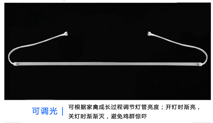 2、可調(diào)光,0-100%可調(diào),根據(jù)家禽成長(zhǎng)過程調(diào)節(jié)燈管亮度;開燈時(shí)漸亮,關(guān)燈時(shí)漸漸滅,