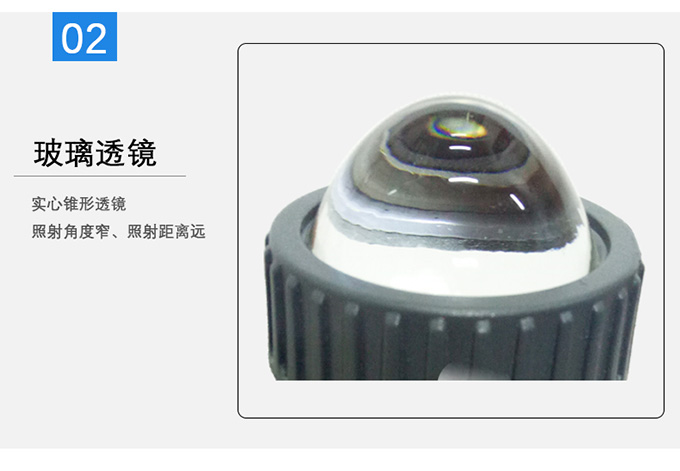 2、實心錐形透鏡,照射角度窄、照射距離遠。