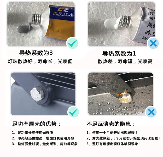 1.光源采用進(jìn)口LED投光燈COB光源,高亮度,壽命長(zhǎng),通透率高,顏色純正無頻閃。大功率2.外殼采用加高加厚優(yōu)質(zhì)航空鋁材散熱鋁材,大幅度提升LED投光燈散熱性能。