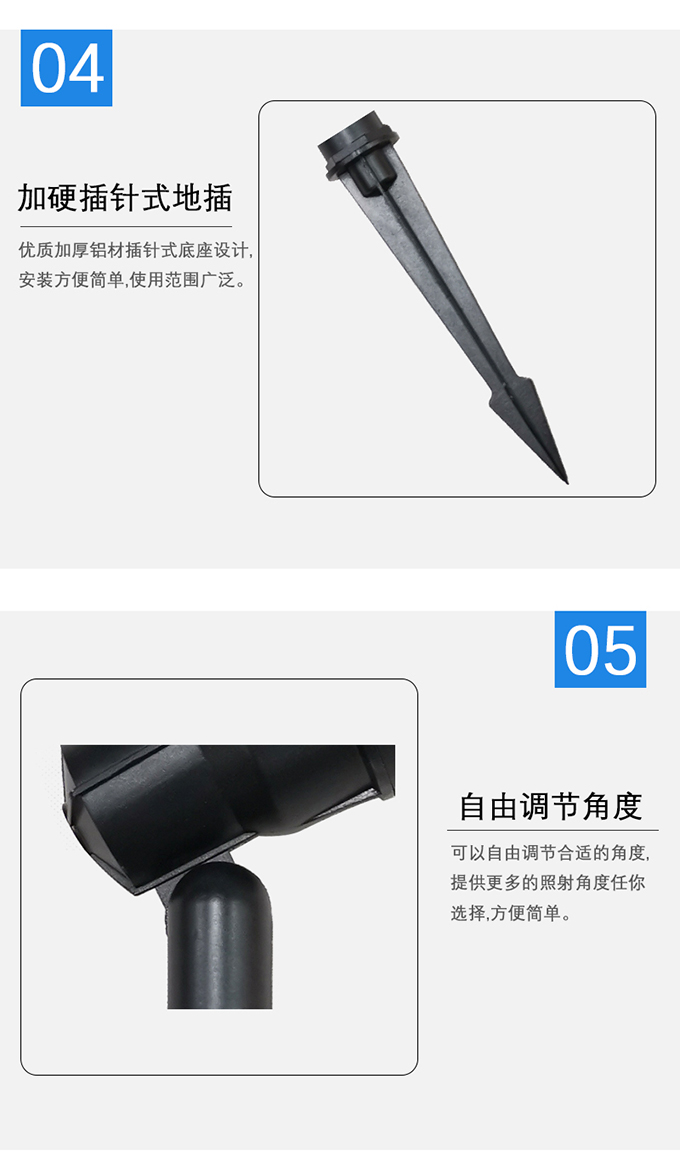 4.優(yōu)質加厚鋁材插針式底座設計,安裝方便簡單,使用范圍廣泛。