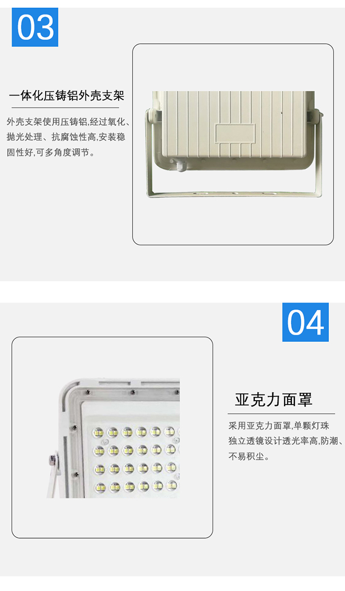 4.外殼支架使用壓鑄鋁,經(jīng)過(guò)氧化、拋光處理、抗腐蝕性高,安裝穩(wěn)固性好,可多角度調(diào)節(jié)。