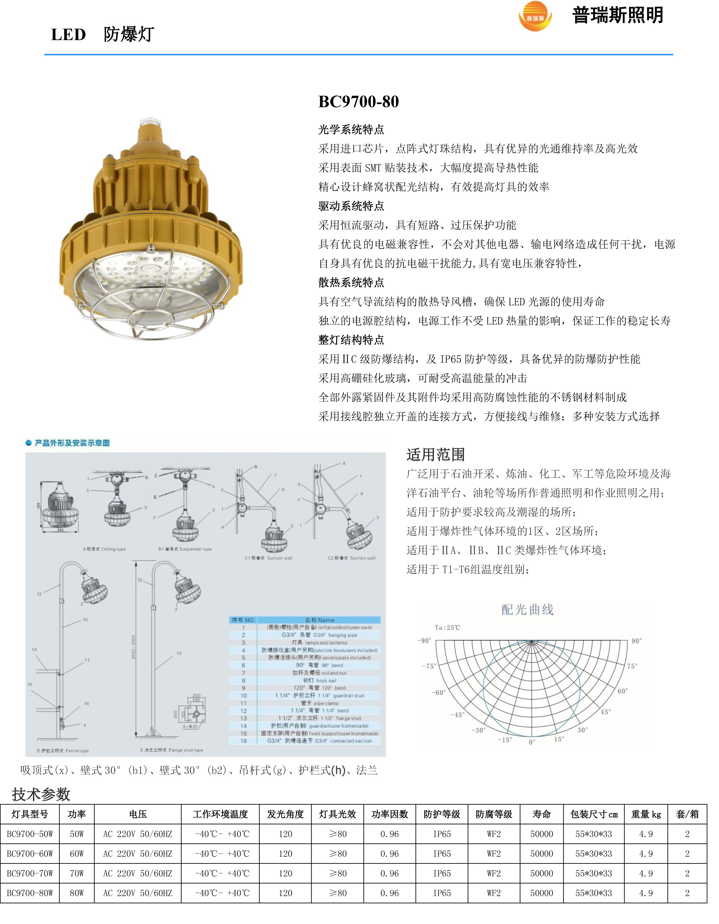 普瑞斯LED防爆工礦燈是防爆燈的一種,其原理同防爆燈相同,只不過光源是LED光源,是指為了防止點燃周圍爆炸性混合物如爆炸性氣體環(huán)境、爆炸性粉塵環(huán)境、瓦斯氣體等而采取的各種特定措施的燈具。