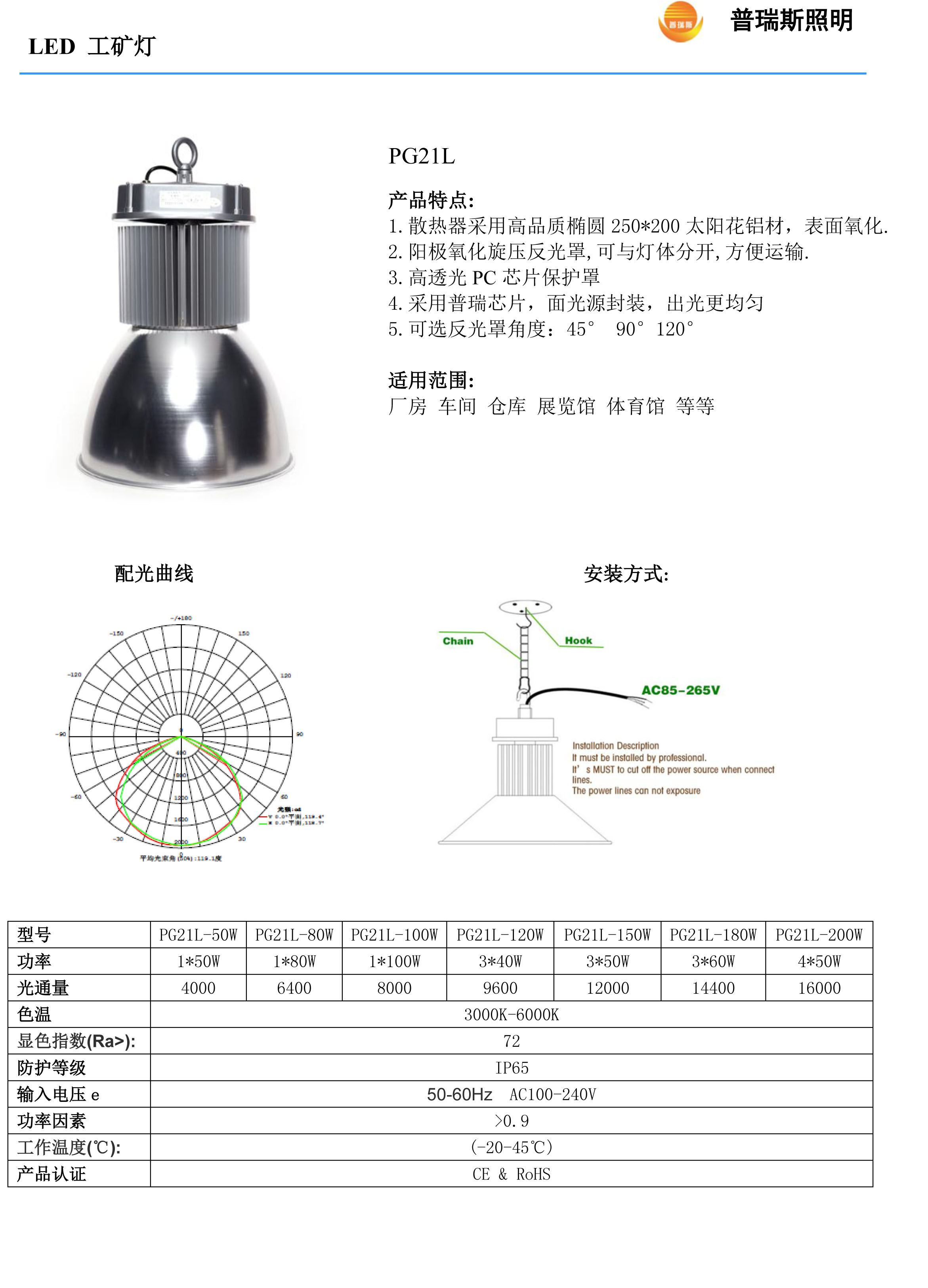 廠房燈一般布置在工作場(chǎng)地的上方或側(cè)壁上,照明整個(gè)工作面,需要使用功率較大的白熾燈、鹵鎢燈、高壓氣體放電燈或數(shù)量較大的熒光燈。